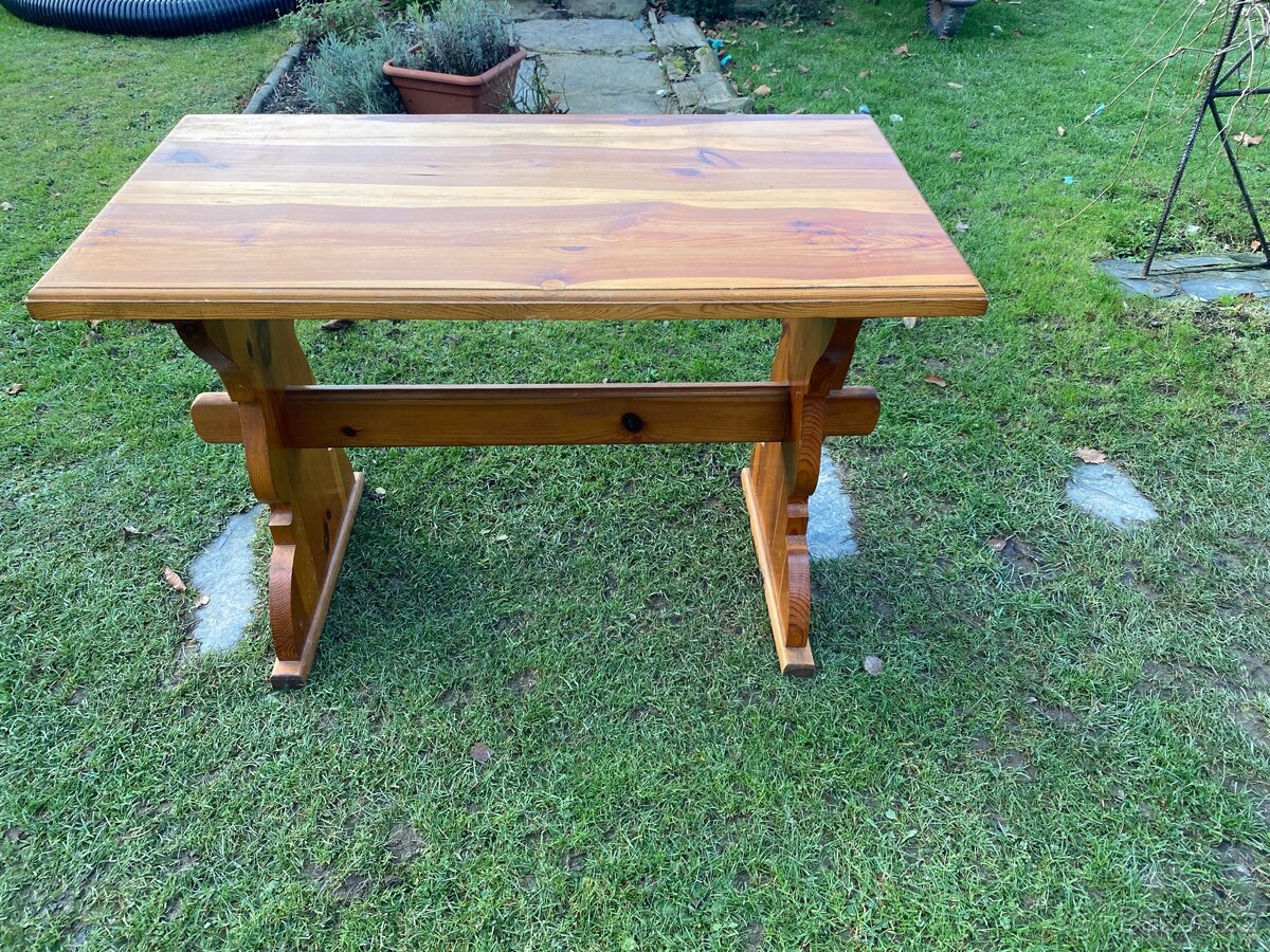 Prodám masivní dřevěný stůl v perfektním stavu, bez poškození. Stabilní, pevná konstrukce, pěkná kresba dřeva.