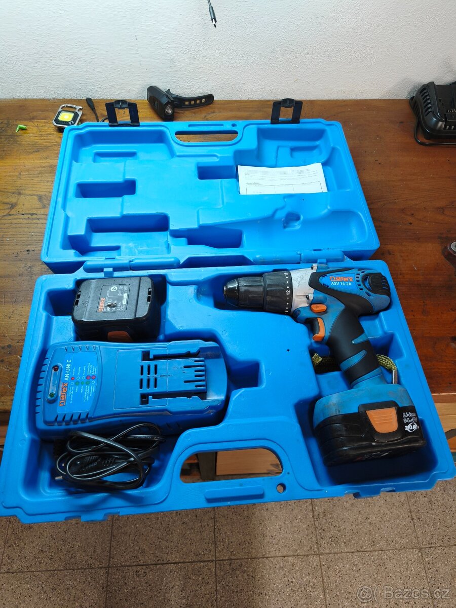 Prodám plně funkční ALU vrtací šroubovák NAREX ASV 14-2A, včetně kufru, nabíječky a 2ks akumulátoru, vše plně funkční.