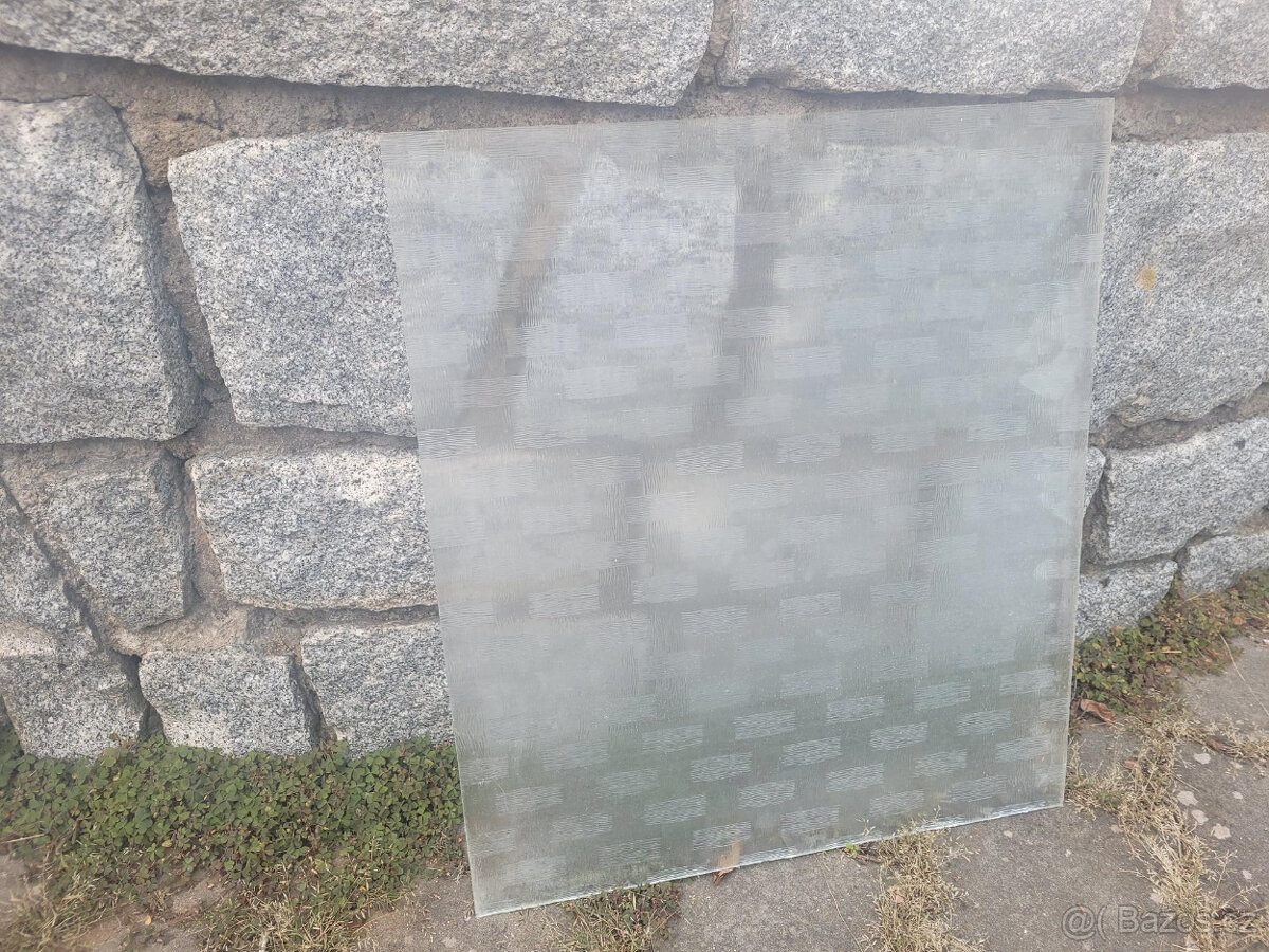 Prodám vzorované sklo do dveří typ "parketa", tl. 4mm, rozměr 55x63cm, počet 20ks