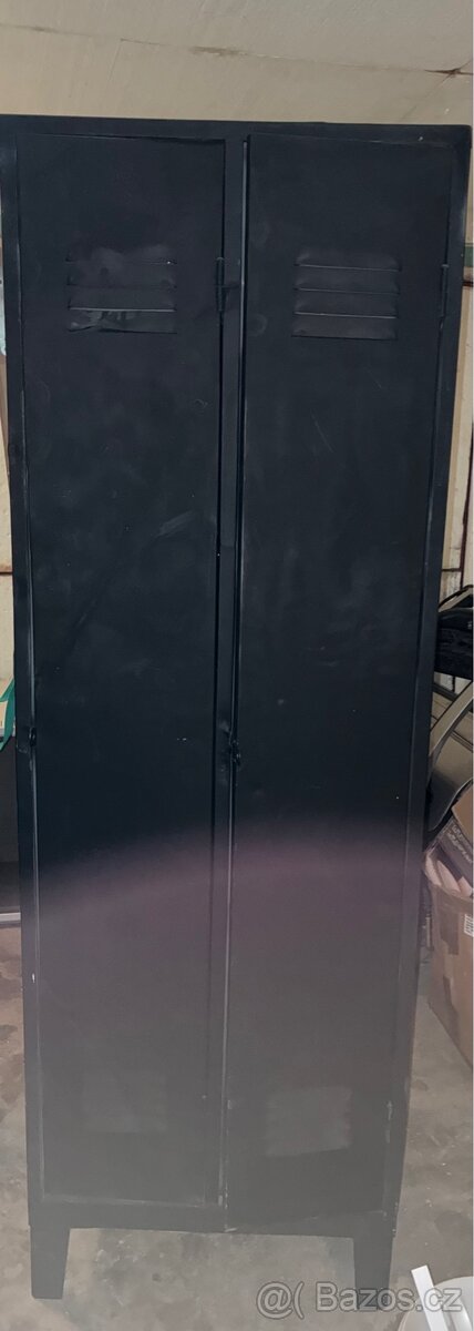 Přenechám za odvoz starou plechovou šatní skříň předělanou na úložnou skříň s policemi. Vhodné do garáže/skladu.