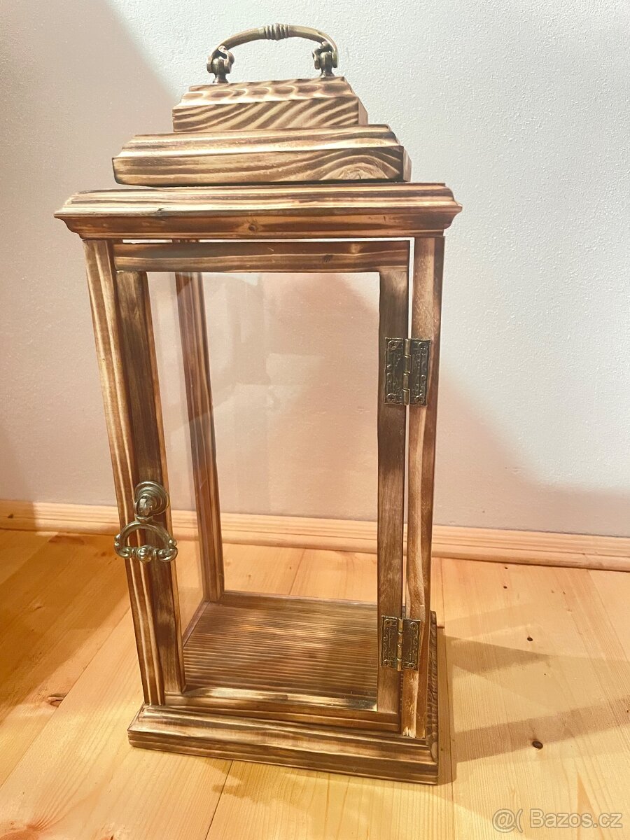 Prodám lucernu vyrobenou ze dřeva s plexisklem (masiv).Vysoká 40 cm šířka 20 cm a hloubka 15,5 cm. Lze vyrobit i různé velikosti.