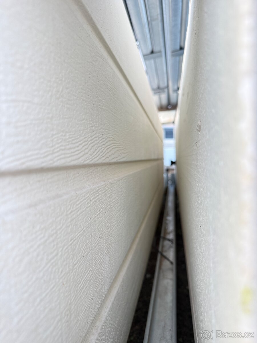 Panely/lamely na sekční garážová vrata . - [4.2. 2026]Prodám 4 panely (3x plný + 1ks prosklený) s izolací o tloušťce 42 mm pro garážová vrata Hörmann LPU 40 3250/2125mm. Vnitřní strana vrat bílá, vnější strana s povrchem imitace dřeva ořech(?). Nové nepoužité panty součástí.