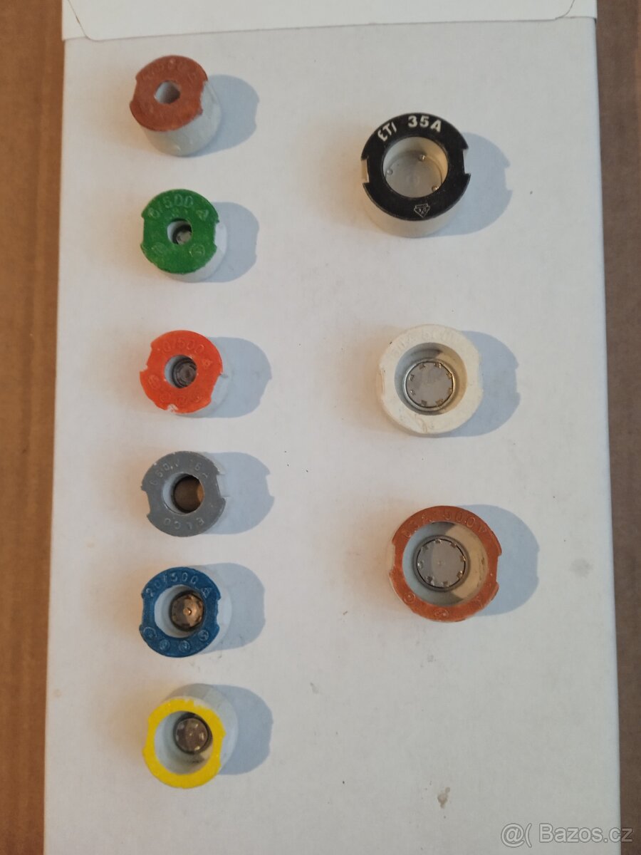 vymezovací kroužky u pojistek -4A-4ks,6A-20ks,10A-18ks a 16A-26ks - jednotná cena 3,-kč/ks a 20A-18ks,25A-30ks-zde cena 4,-kč/ks a 35A-10ks,50A-8ks,63A-1ks- zde cena 5,-kč/ks, možné zaslání Balíkovnou tlf.732 118 317