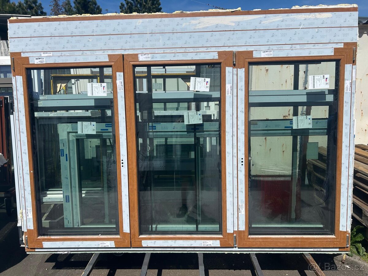 Okno trojdílné, 2475x1450, rustic cherry, poz.50