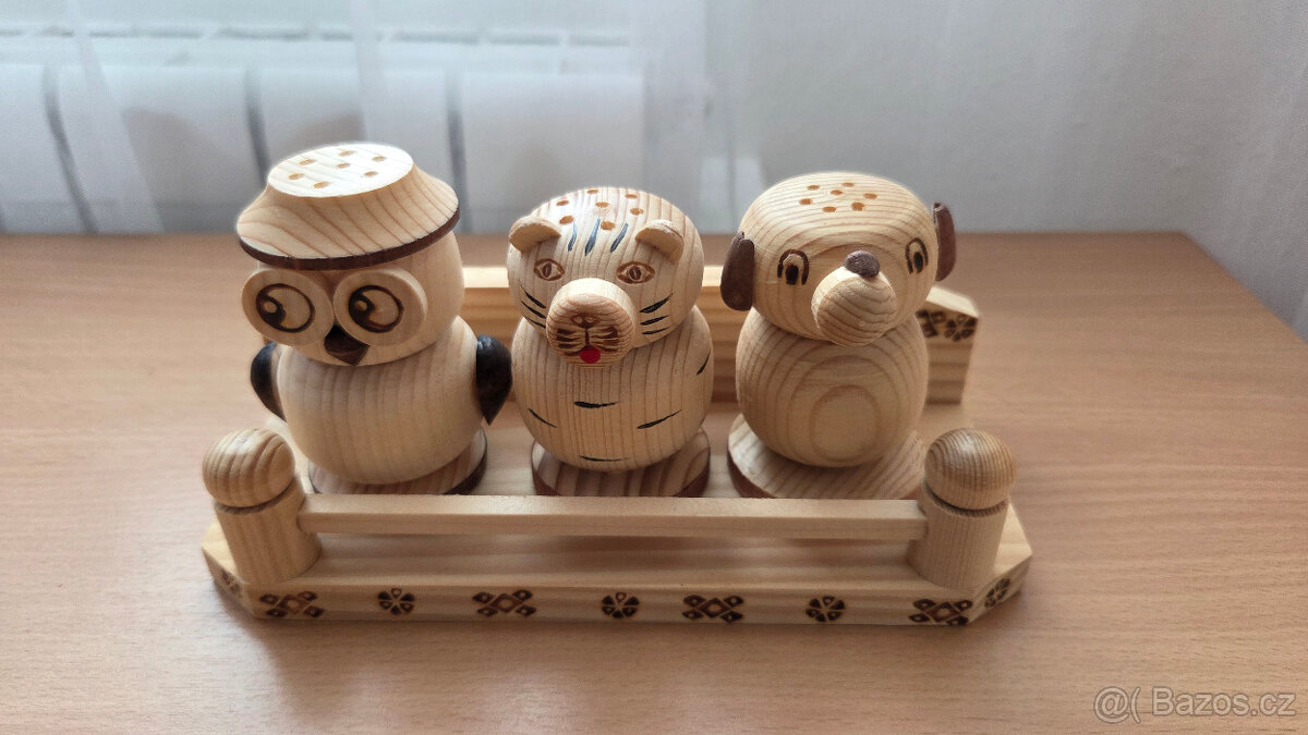 Sada 3 kořenek vyrobených ze dřeva. Nové, nepoužité. Rozměry základny cca 19x8cm.