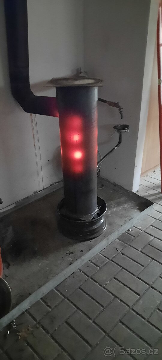 Prodam olejova kamna s přídavným přidáváním vzduchu pomocí ventilatoru .Nepotřebuje komín .Jen odvod spalin . Nekouří výborná výhřevnost. Spotřeba oleje 2 litry na hodinu . průměr 24.5 cm výška 120 cm . Tloušťka stěny trubky a hořáků 5mm možnost 60l soudku a připojení za příplatek. Nezničitelna kamna žádný papir. Kamna se staví na miru dle vašich parametrů ( umístění komínů nálevky hořáků) pořádný železo žádný papir výdrži 100 let