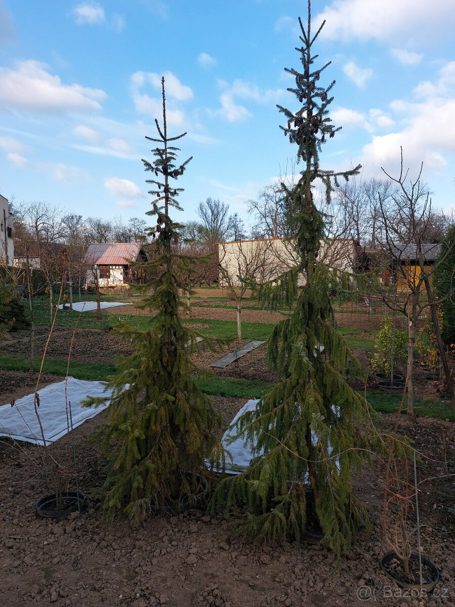 Prodám 2 smrky omorika rostlé v kontejnerech. Výška je 3 metry. Smrky vykopu a připravím k odvozu. Pouze osobní odběr. Cena 1000 Kč / kus.