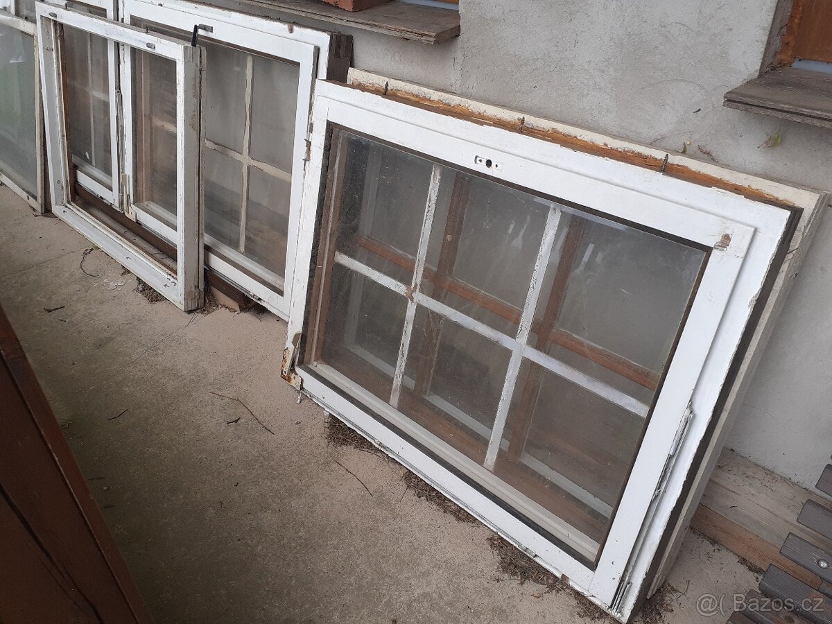 Použitá okna - [9.2. 2026]Prodám za symbolickou cenu nechám čtyři zdvojená dřevená okna, sklo je zasazené v gumě slušný stav, rozměr oken byl 150x150cm,cena za kus 100.kč.