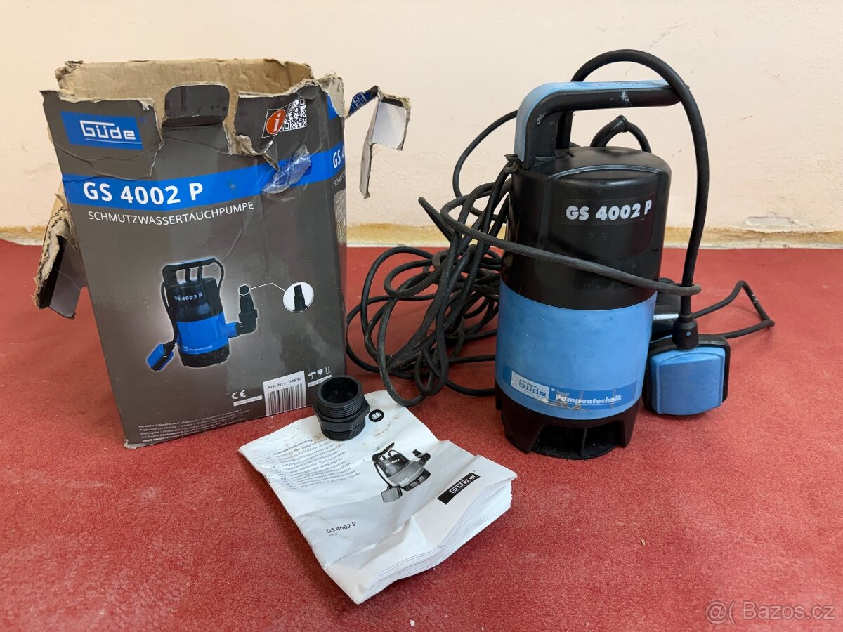 Prodám lehce použité kalové ponorné čerpadlo Gude GS4002P. Výkon motoru 400 W. Čerpadlo má plovákový snímač s aretací a 10 m elektrický kabel.