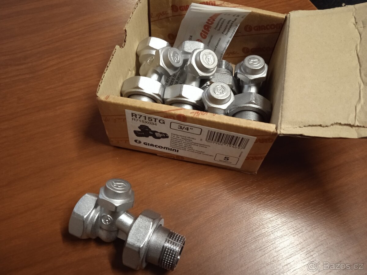 Prodám regulační radiátorové uzavíratelné šroubení přímé, s vypouštěním, chromované, 3/4" zn. giacomini, nepoužité, v originálním balení od výrobce. Možnost odběru 60-ti kusů.