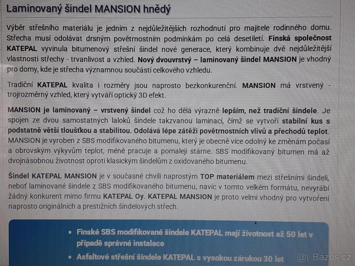 Dobrý den zbylo mě že střechy 15 balíku šindelel 24 m2 Katepal Mansion hnědý.A 3 krabice pozinkovanych hřebíků po 2,5kg.Na pergolu nebo garáž by to někomu stačilo. ŠINDEL 475 KČ m2 ,HŘEBÍKY 1kg 100 kč .Pdkladová fólie pás LiteBase 500 pod šindel 9.m .1m za 100 kč.