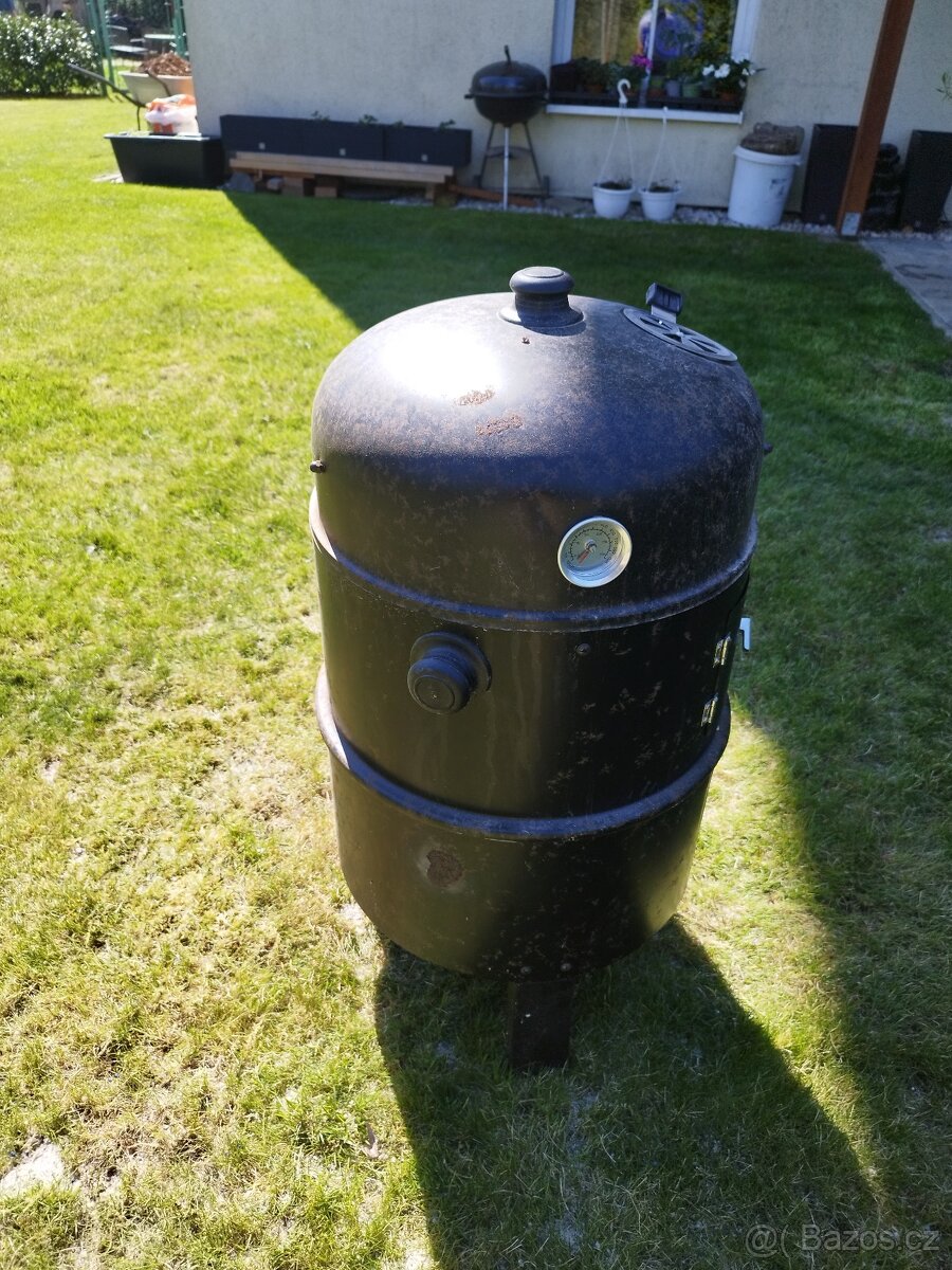 Gril na drevene uhli velký - [10.2. 2026]Prodám velký gril na dřevěné uhlí nebo brikety na kolečkách, uzavíratelné víko zajistí dostatečně vysokou teplotu, vyska 73cm a prumer kopule 66cm, grilovaci plochy 41cm
