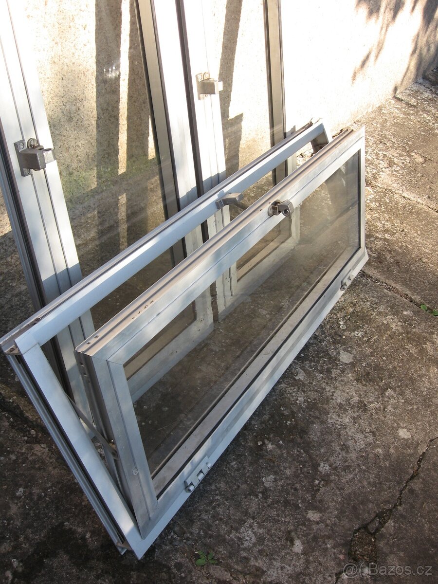 Prodám výklopné dvojité hliníkové okno viz foto, už jen jeden kus, rozměr 57x147x6cm cena 2500,- kč.