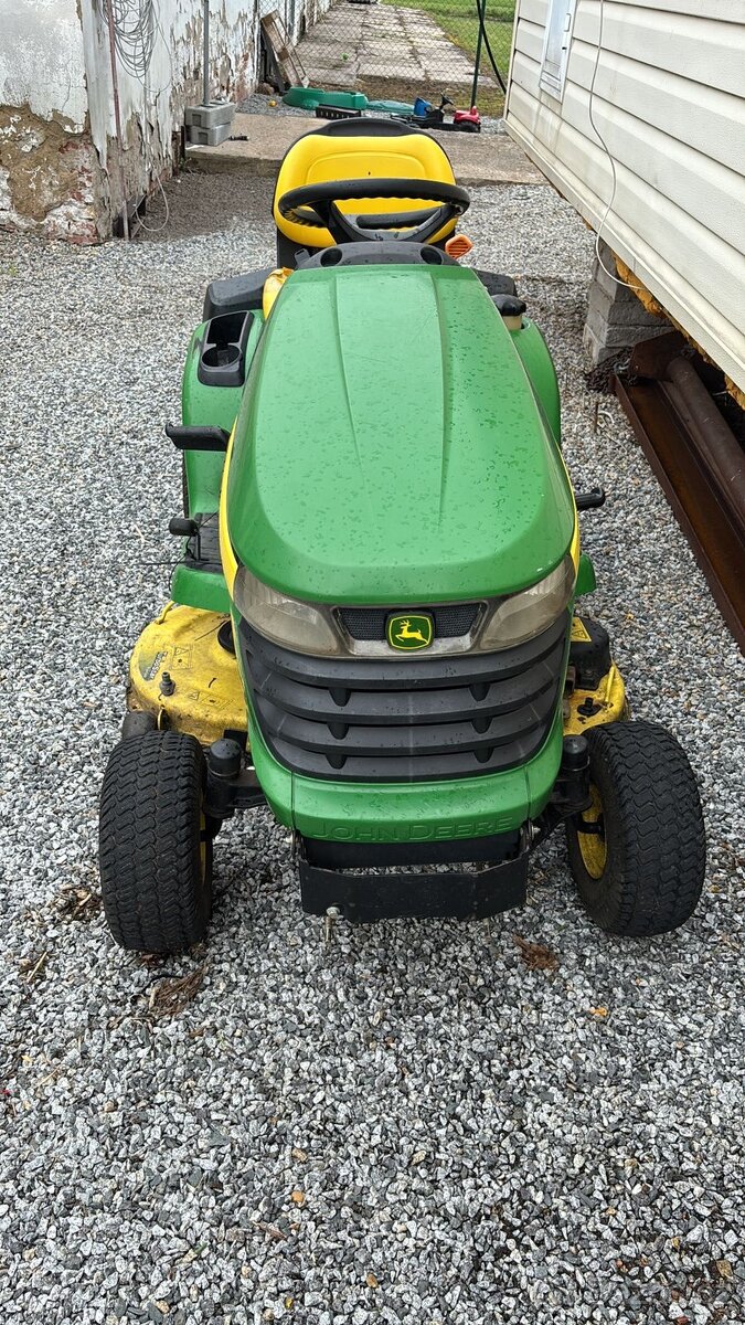 Dobrý den prodám traktůrek John Deere X300R. Minulý rok generální oprava pojezdu a sekačího ústroji. K traktůrky je koš.