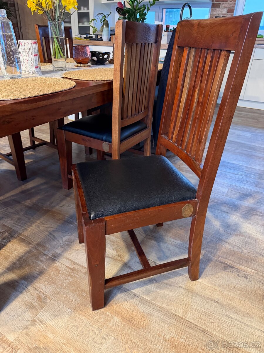 Židle k jídelnímu stolu, 6kusu židli dřevěných s černým polstrem 400,-/ ks