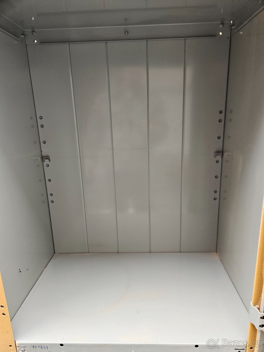 Nabízím dvě kovové skříně o rozměrech 59x39x75cm a 118x79x57. U menší je součástí jeden klíč, k velké schází. Každá skříň má polici, kosmetické škrábance ale nejosu pobouchané. Cena za obě dohromady, osobní odběr na Praze 8. Ideálně volejte, případně napiště SMS.