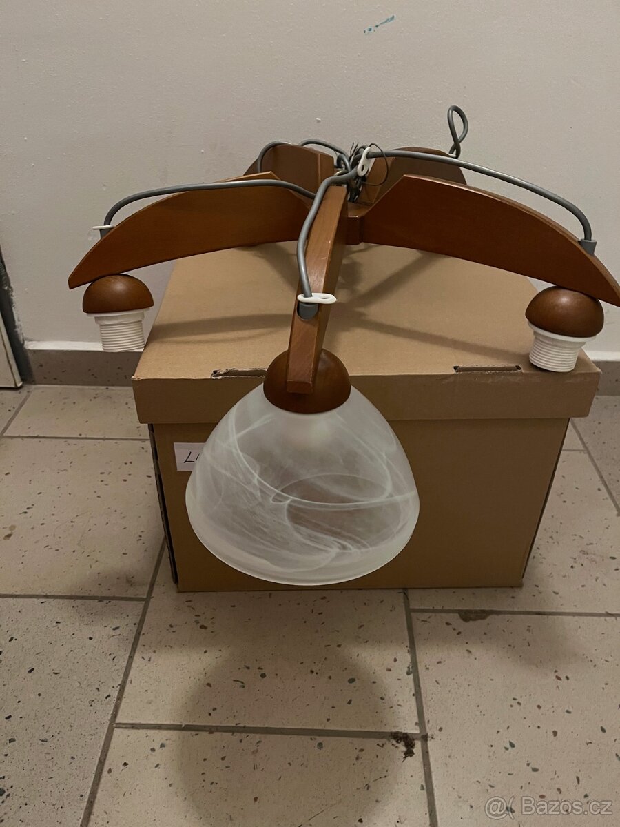 Lustr - dřevo-sklo hnědá barva