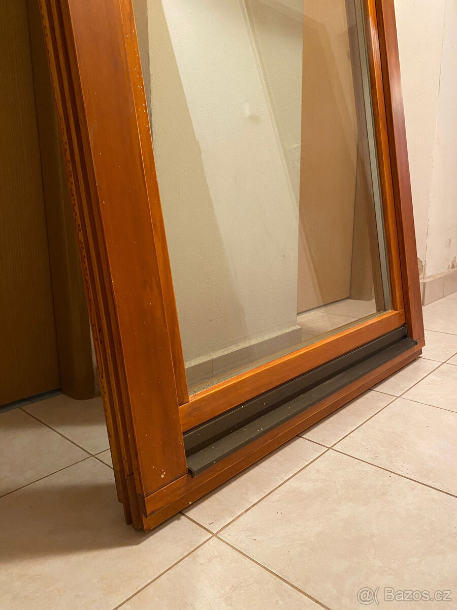 Prodám nové levé dřevěné Euro okno rozměru 980 šířka x výška 1100 mm viz. foto. Otvíravé a výklopné.Izolační dvojsklo. Mírně poškozená povrchová úprava-lazura.