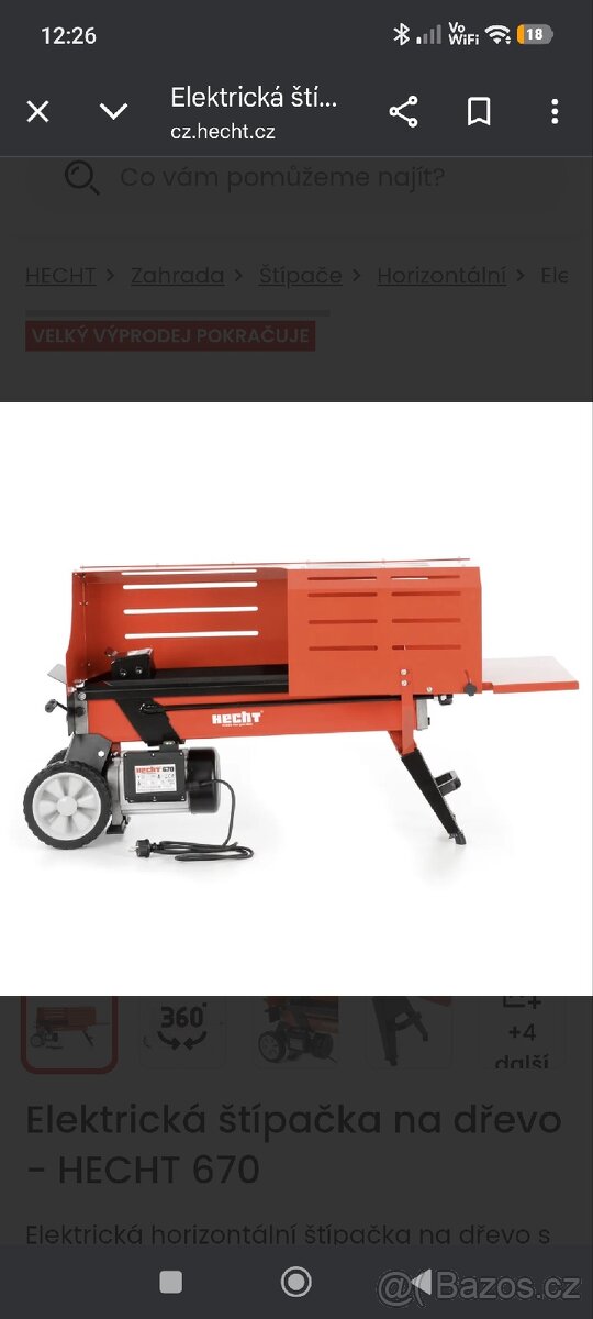 Prodám stipacku na dřevo značky HECHT,plně funkční včetně ochranné klece,původní cena 6000