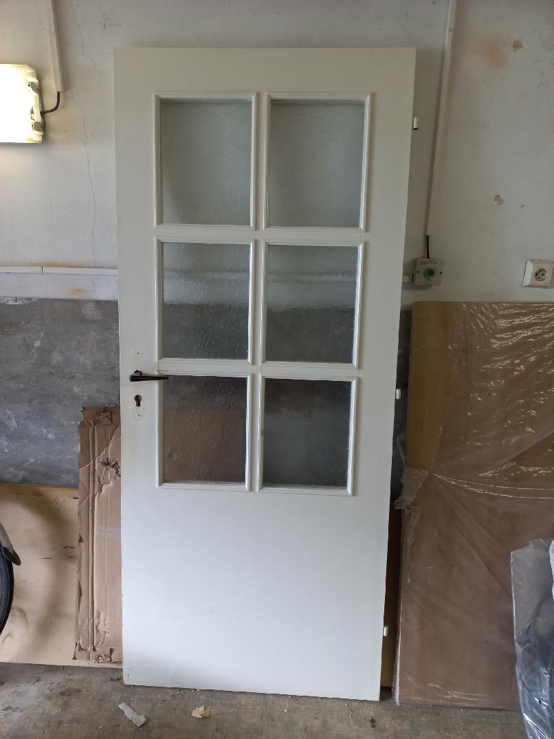 Prodám levé interiérové dveře 2/3 prosklené s rámečky bílé.
