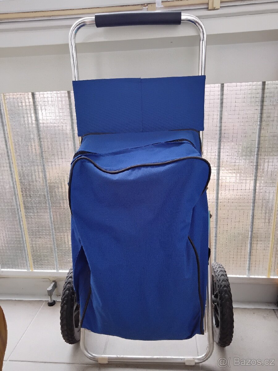 Výška včetně rukojeti je 103 cm, pohodlně se drží i ovládá díky kovové konstrukci. Materiál tašky je pe ...