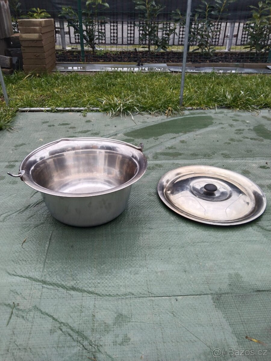 Prodám nerezový kotlík o objemu 8L včetně poklice. Málo používaný. Vhodný na vaření, gulášů, polévek atd.