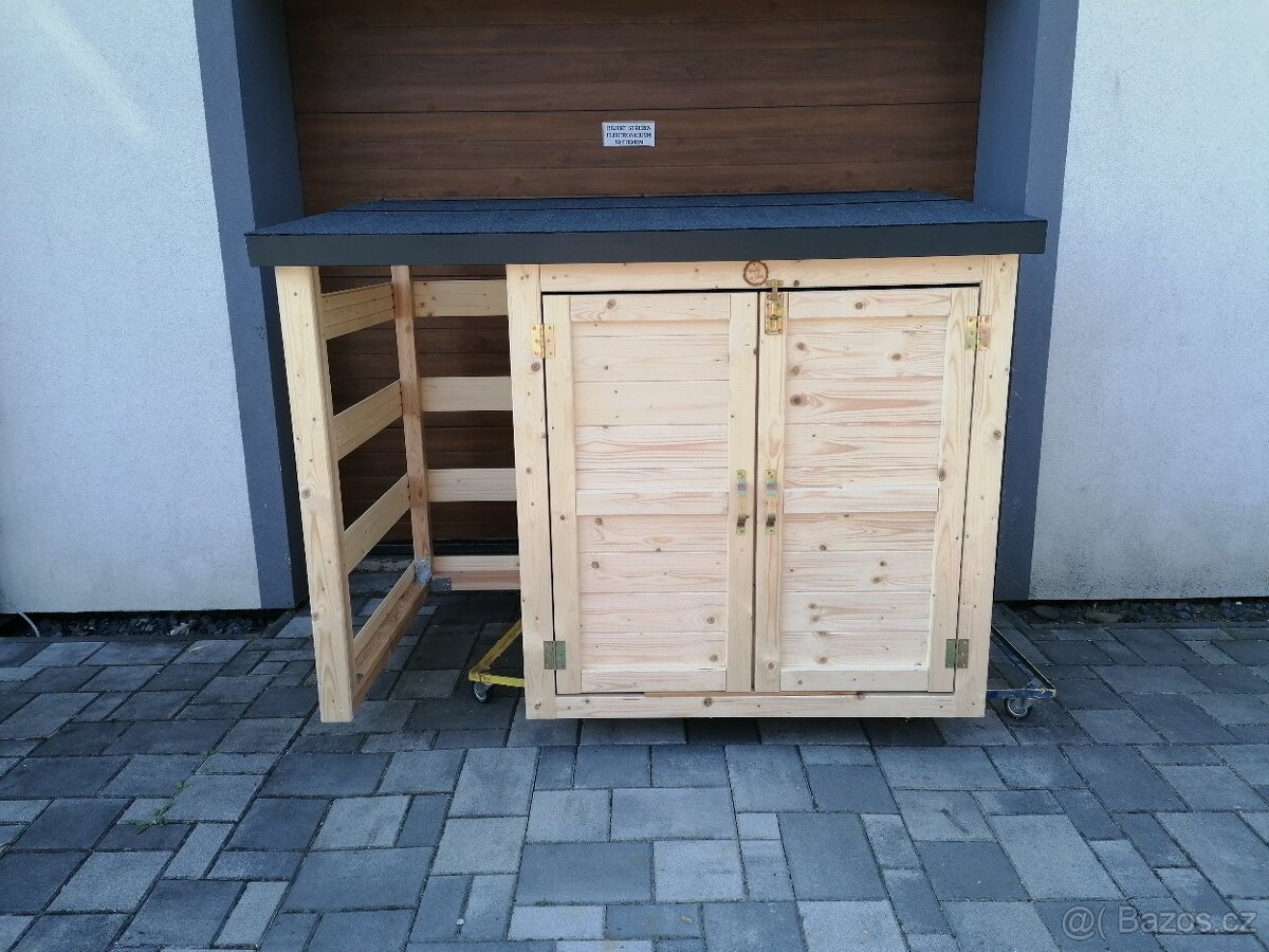 Sestaven se smrkovych palubek (19x118) a smrk.dřeva a rám je ošetřen inpregnaci.Na střeše je oplechovaní a asfaltovy posypový pás. Vnějším rozměry jsou š/100 x h/100 x v120/100 centimetrů a vejde se do něho standardn ...