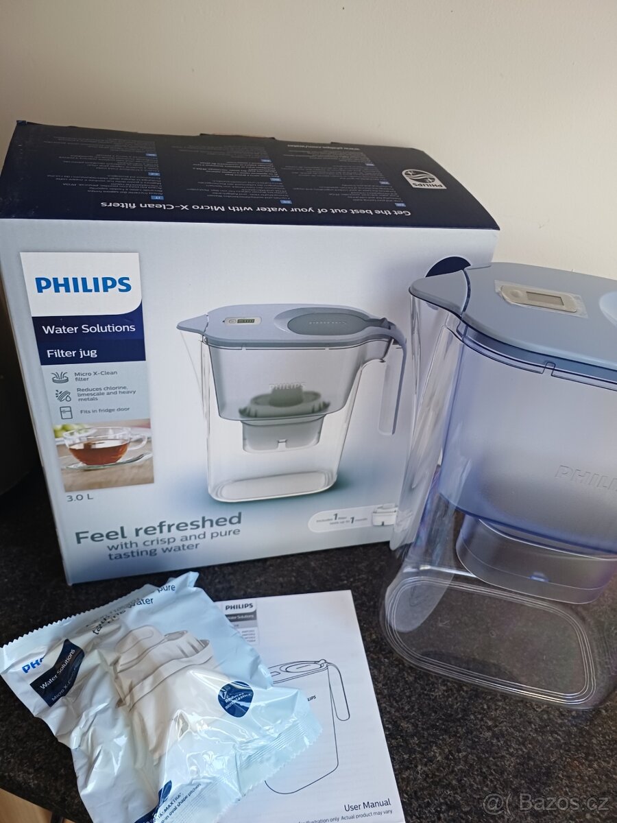 Užijte si čerstvou, křišťálově čistou vodu.Objem konvice: 3 litry, digitální časovač. Nové, originální balení + filtr