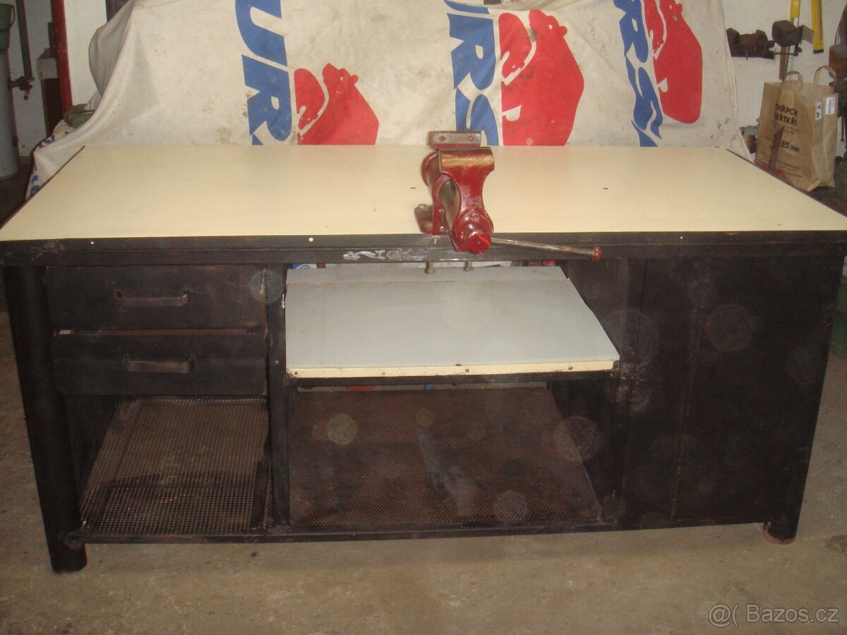 Pracovní ponk a skříňky - [1.2. 2026]Prodám železný pracovní ponk.