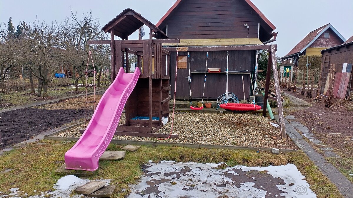 Dětské hřiště - [5.1. 2026]Nabízím dětské hřiště na zahradu s akátového dřeva. Domek, stěna na lezení tabule na malování. Skluzavka, rozměr 7x8m kotvení nejlépe do betonu.