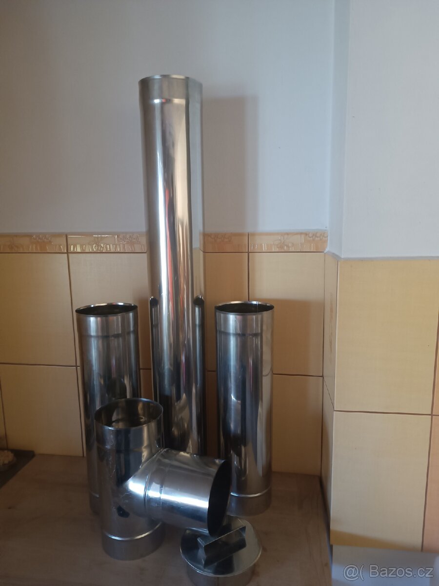 Nerezové kouřovody průměr 140 t 0.6mm trubka1m-1ks 0,5m-2ks čistící t kus s víčkem-1ks nové, nepoužité prodám jen komplet.puvodní cena 3000kč