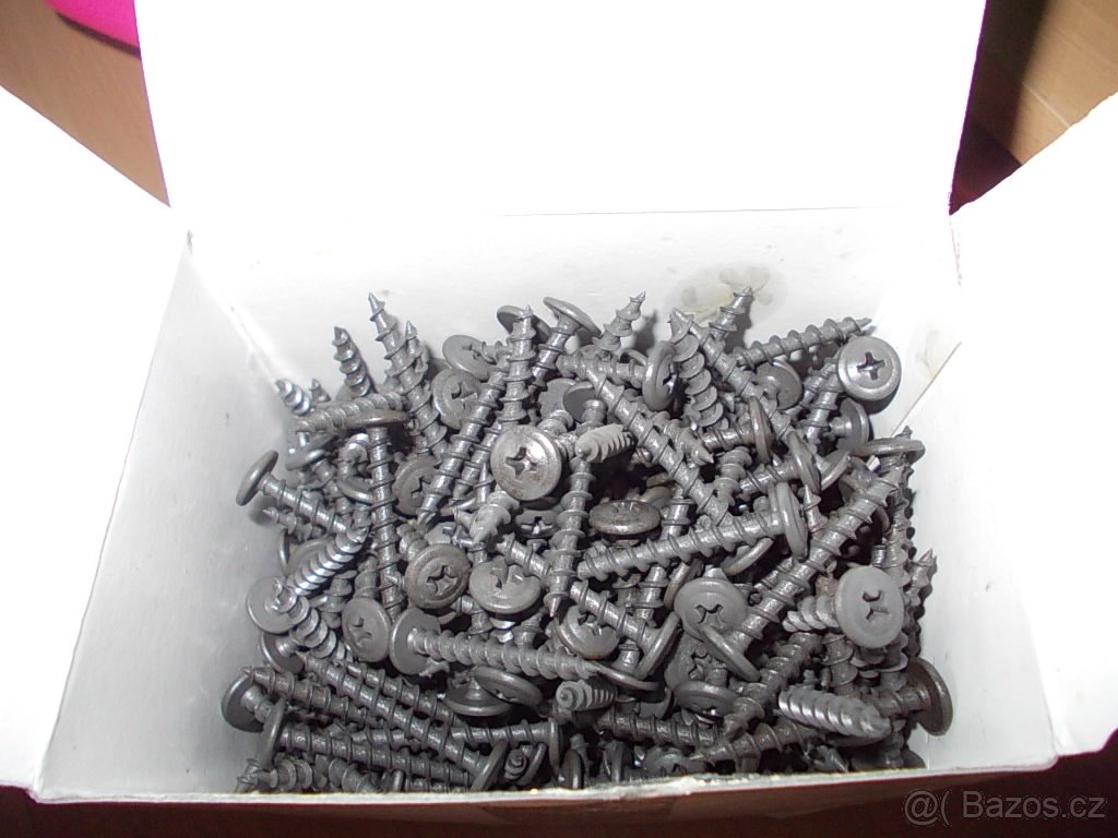 Prodám šrouby FN 35 hrubý závit a velkou plochou hlavu. Používá se na připevňování závěsných sádrokartonových prvků na dřevěné nosné konstrukce. Průměr šroubu 4,2mm, délka 35mm. Balení po 500ks. Cena je za 500ks.