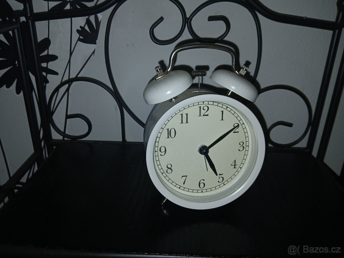 Prodám klasický bílý budík v retro stylu. Nefunkční, jen jako dekorace, třeba na chalupu. Materiál kov, průměr 10 cm, celková výška 14 cm.