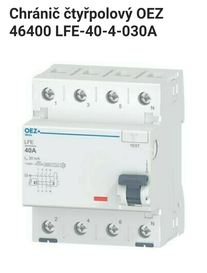 Prodám 4ks chránič OEZ čtyřpolový LFE 40A 30mA zkratovala 6kA, viz foto týden zapojený. PC 830kč tet 600kč ks, dále 6ks jistič OEZ jednopolový 10A LTN #B# zkratovala 10kA při odběru všeho zaplatím dopravu.