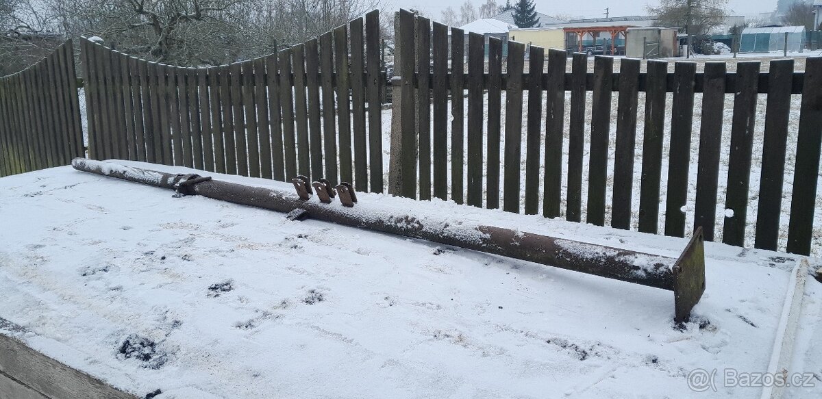 Prodám železnou trubku, délka skoro 3 metry. Šíře 6 cm. Asi to měly být stojky na betonování stropů, na konci je stojna.