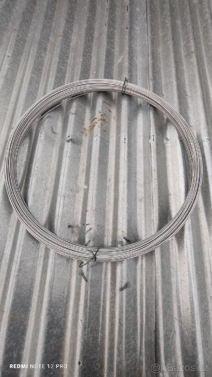 Napínací drát pozinkovaný, průměr 3,1 mm, délka 170m, hmotnost 10 kg.