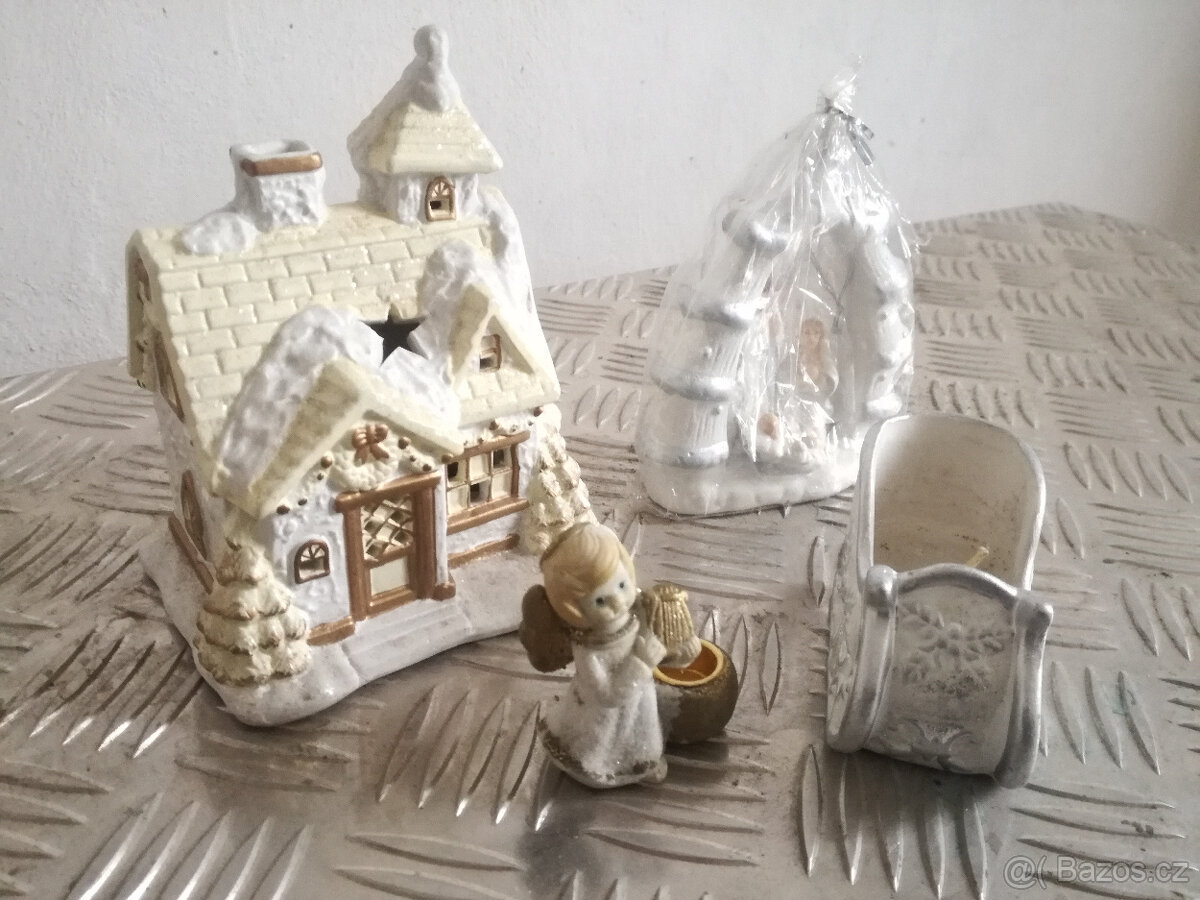 Novodobá Vánoční dekorace na stůl, vše nepoužívané, leželo nějakou dobu zabalené ve skříni, celkem 4ks.