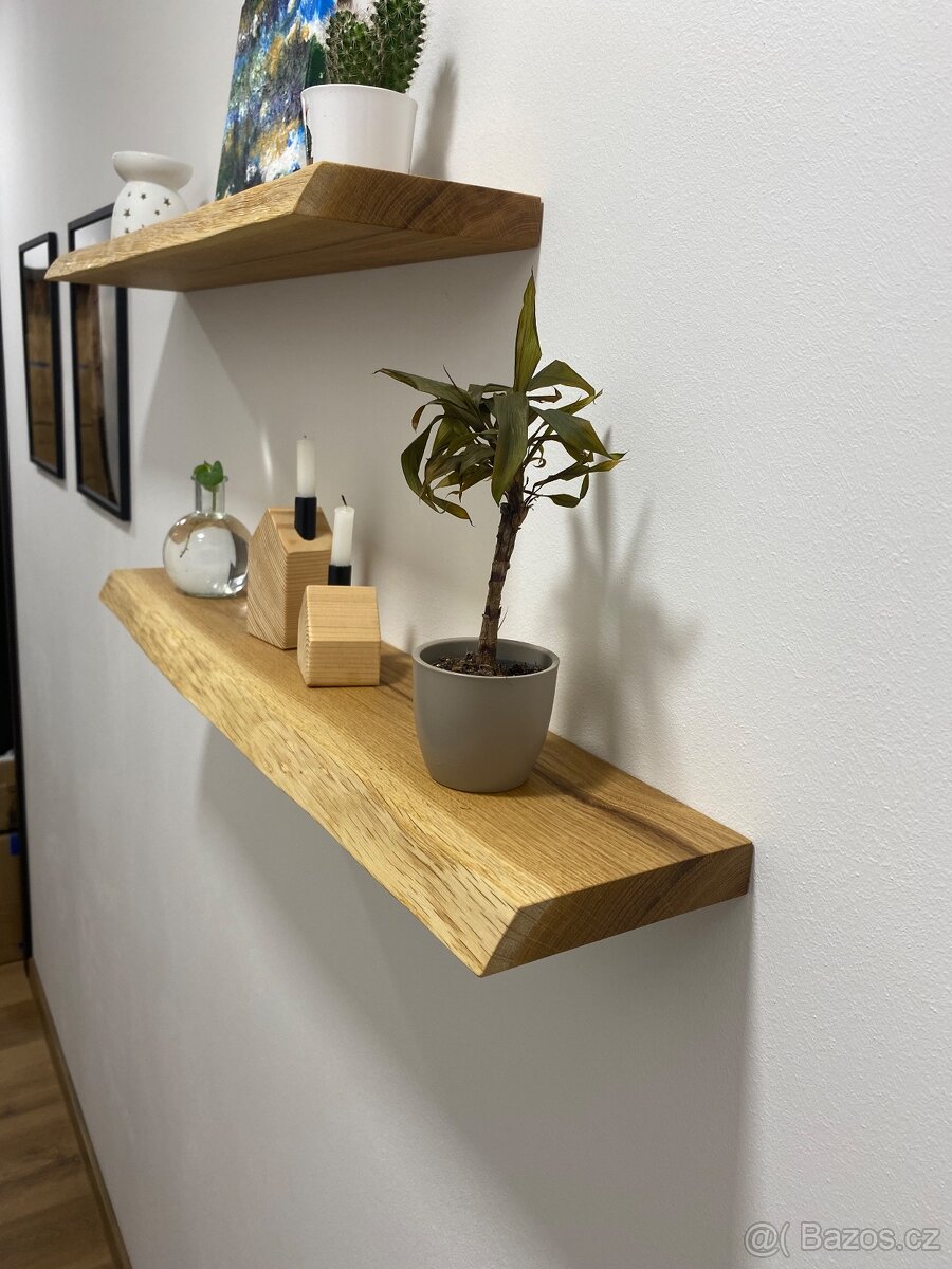 Vyrobím na míru masivní dubové poličky s přírodním okrajem, ošetřeno kvalitním olejem pro dokonalý vzhled a trvanlivost. Super doplněk do domácnosti. Včetně trnů k montáži.