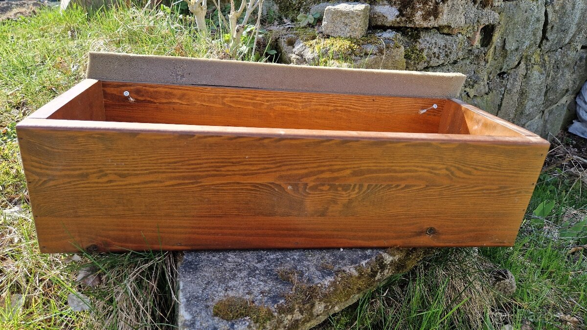 Prodám 4 ks krásných dřevěných truhlíků, rozměry délka 55cm, hloubka 12,5cm, šířka 22cm. Cena za jeden