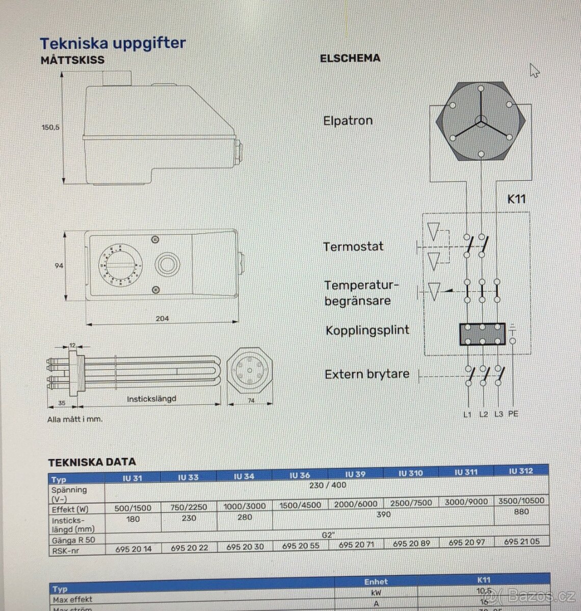 Těleso topné,nové,nepoužité IU 36-4,5 kW
