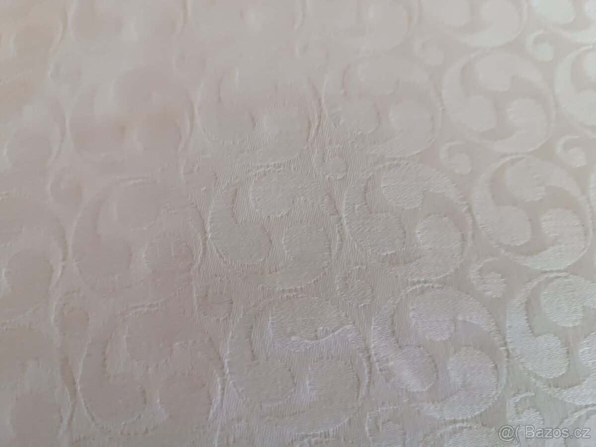 Prodám čistě bílé povlečení z damašku s velmi jemným vzorem, na jednu postel. Skoro nepoužívané, bez fleků a poškození. Rozměr peřiny 180 x 125 cm, polštáře 86 x 91 cm.