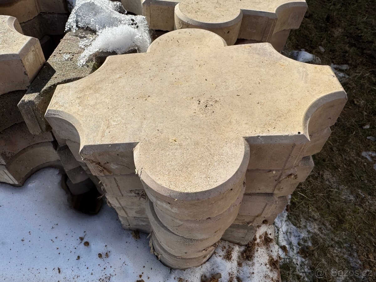 Prodám starší zámkovou dlažbu ve velmi dobrém stavu typ Květ hladký (27 x 22 x 4,5 cm). Barva původní - cihlová, ale působením vlivů počasí a stáří změna barevnosti. Množství cca 40 m2. Uvedená cena za 1 m2.