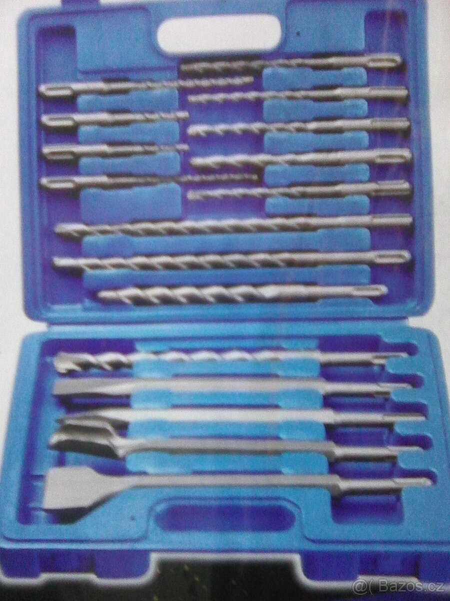 Vrtáky a sekáče SDS PLUS 2 sady cena za jednu sadu 490.kč Vrtáky a sekáče SDS PLUS, sada 12ks. Sada sekáčů a vrtáků pro sekání a vrtání betonu, zdiva a podobných materiálů, pro elektro pneumatická vrtací a sekací kladiva s upínáním SDS Plus. • Sekáče a vrtáky SDS Plus sada 12 kusů • Sekáče • Plochý délka 250 mm šíře 20 mm • Drážkovací délka 250 mm šíře drážky 22 mm • Špičák délka 250 mm • Vrtáky dvojbřité • Délka 110 mm průměr 5 / 6 mm • Délka 160 mm průměr 8 / 10 / 12 mm • Délka 210 mm průměr 14 / 16 mm • Délka 300 mm průměr 18 mm • Délka 450 mm průměr 20 mm