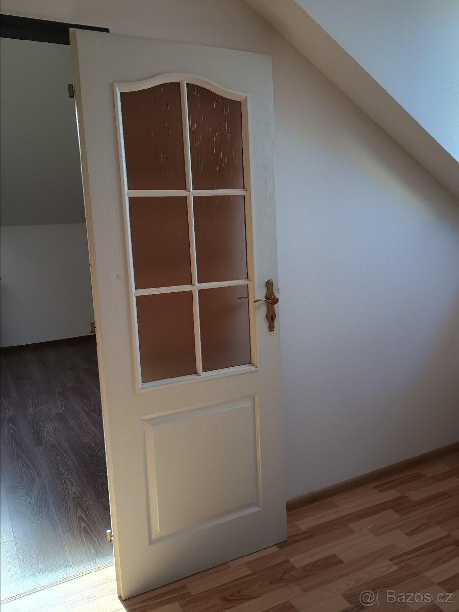 Dveře interierové - [12.2. 2026]Prodam dveře do bytu v zachovalém stavu. Klika,zámek,vše funkční. 1x 80L prosklené, 1x60L plné (na vnitřní straně zrcadlo). Osobni odběr.