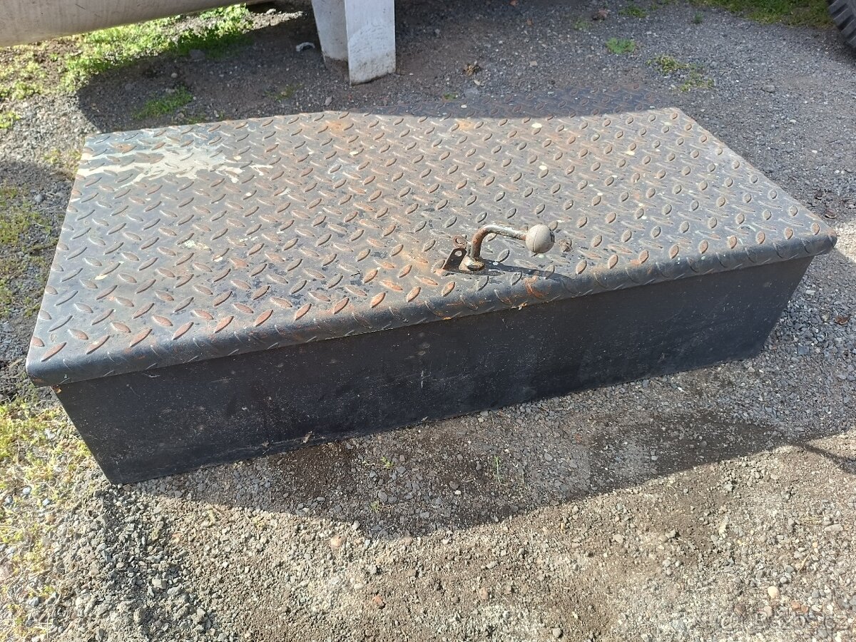 Prodám tři železné bedny tovární výroby. Rozměry 100x54x25cm, plech 2mm, víko ze slzičkového plechu (cca 5mm včetně slzičky). Bedny jsou pochozí.