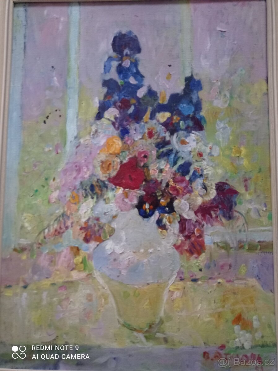 Prodám obraz kytice - olej, signováno, viz fotografie.