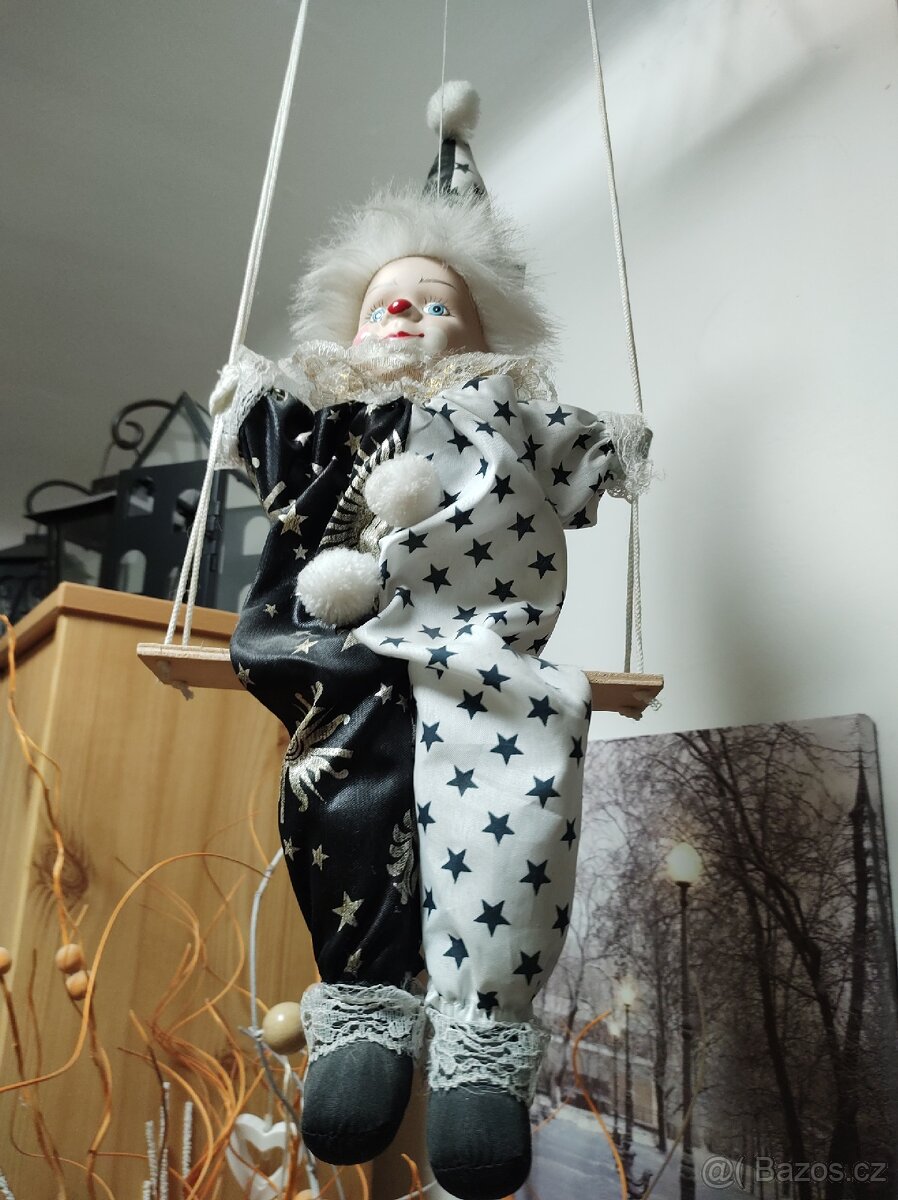 Klaun na zavěšení s keramickou hlavou, byl pouze vystavený