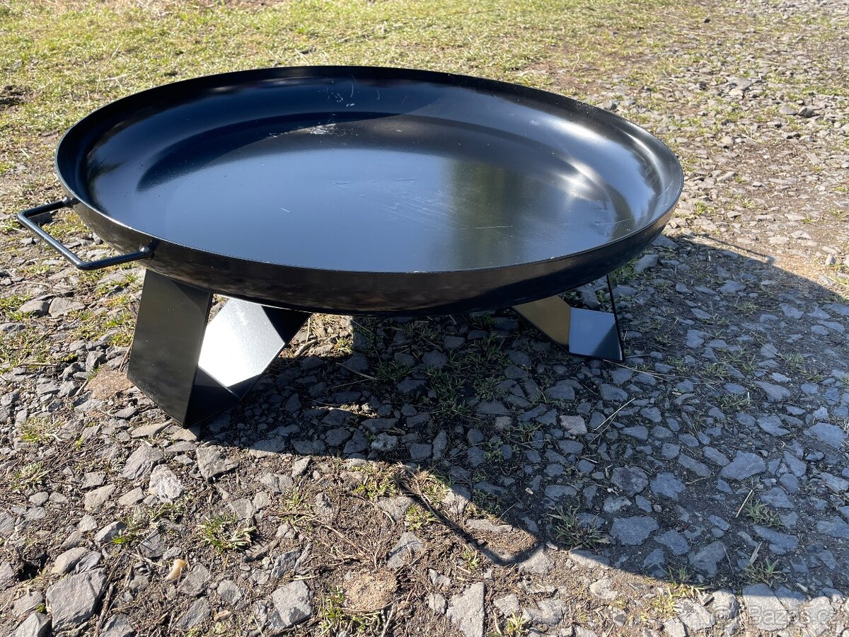 Nabízím nové přenosné ohniště, topeniště do Vaší zahrady. Ohniště je ocelové, svařované, žádné šrouby, silný materiál. Průměr 60cm, výška od země 20cm.