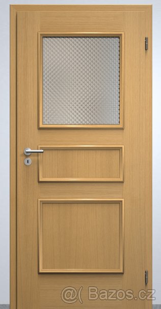 Prodám interiérové dveře Bergamo typ 38 - dýha Buk - výplň Mastersoft čiré, horní okénko - levé - rozměr 80 x 197cm. Možné s kováním i bez kování.