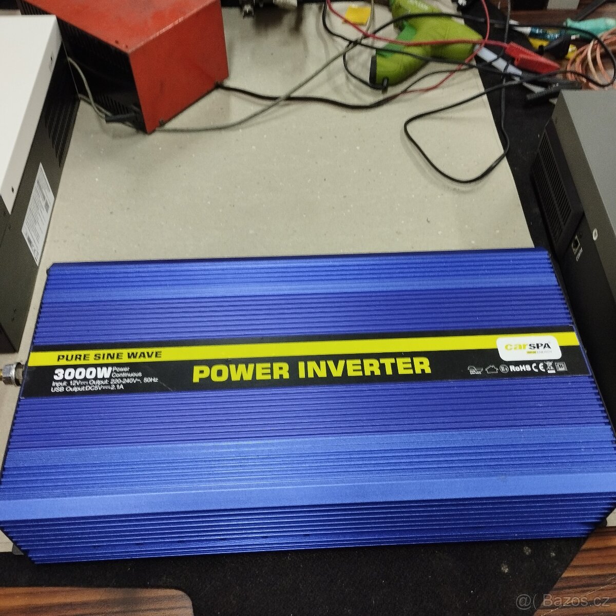 měnič napětí na 12V stálý výkon 3KW možno přetížit krátkodobě až na 6KW + solární regulátor srne 2440 jede na 12V+24V dobijí až 40A.